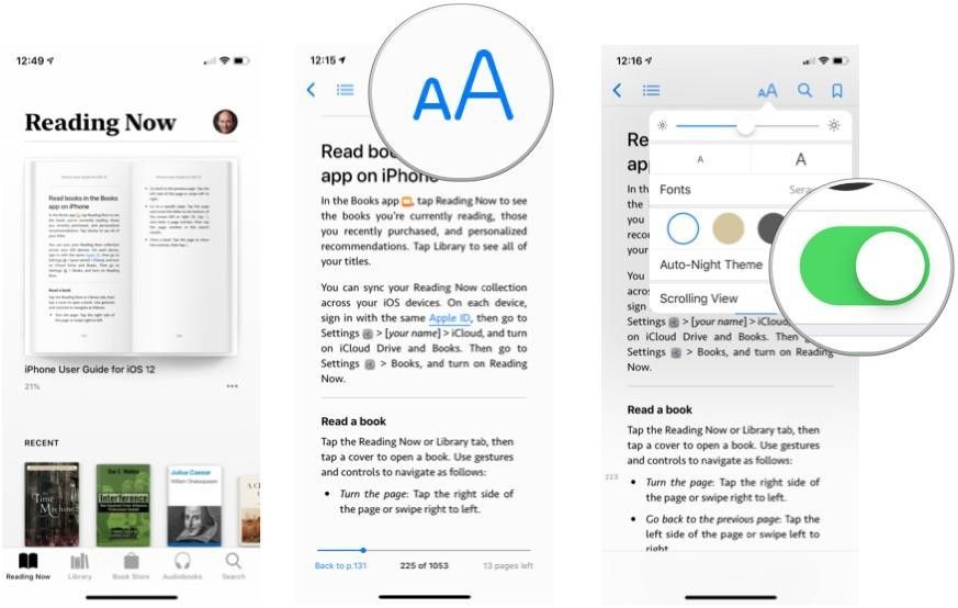 Если вы читаете книгу в комнате с недостаточным освещением, вы можете сделать так, чтобы книги автоматически меняли цвет и яркость страницы. Это очень удобно, если вы читаете в постели, когда ваш партнер пытается уснуть.