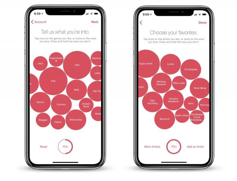 Вам будет представлен ряд пузырьков на экране, представляющих разные жанры. Нажмите или нажмите те, которые вам нравятся, и дважды нажмите те, которые вы любите. Вы также можете нажать и удерживать жанр, если он вам не нравится. Нажмите кнопку сброса, чтобы начать снова, если вы допустили ошибку.