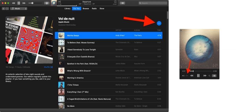 К ним также можно получить доступ, используя аналогичную кнопку с многоточием, которая появляется в левом верхнем углу окна альбома / списка воспроизведения и в нижней части экрана мини-плеера.