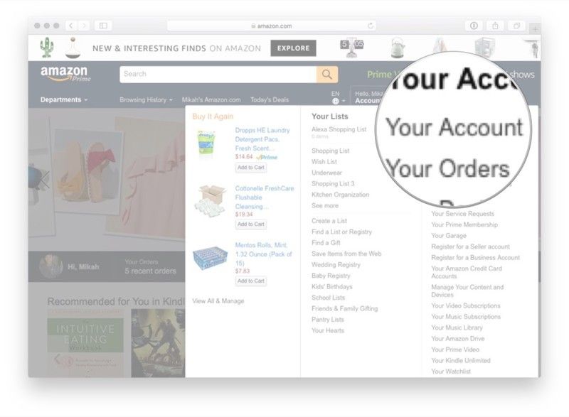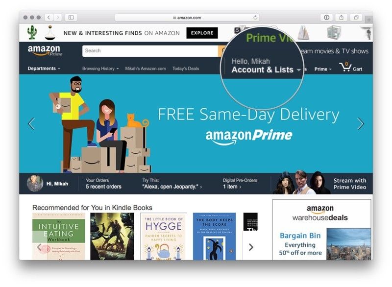 - Посетить Сайт Amazon а также Войдите в свою учетную запись.