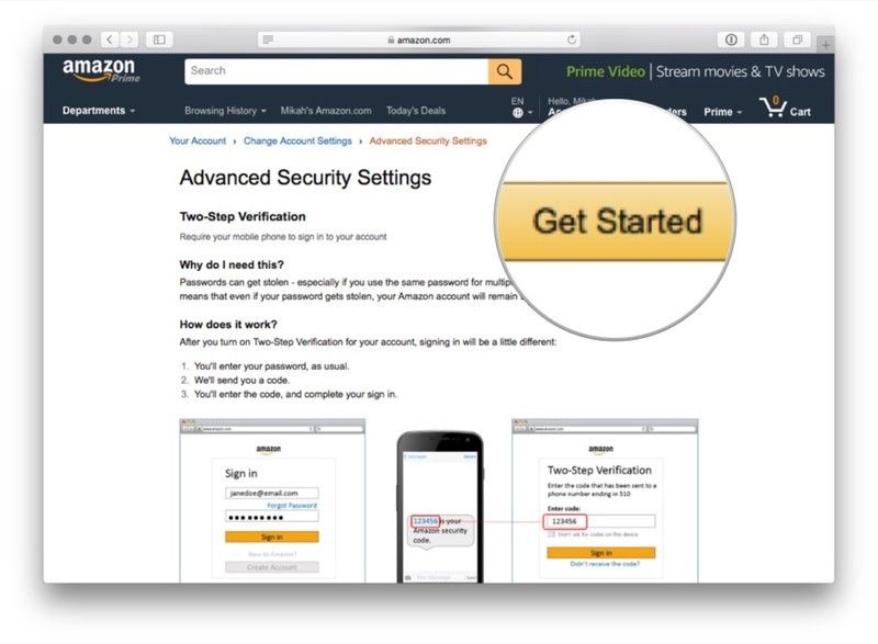 Двухфакторная аутентификация добавляет дополнительный фактор (в данном случае сгенерированный код) к процессу входа в Amazon, поэтому даже если пароль вашей учетной записи каким-либо образом обнаружен, ваша учетная запись остается заблокированной без кода. Рекомендуется заблокировать и загрузить двухфакторную аутентификацию для любой учетной записи, которая ее предлагает. Amazon предлагает два типа двухфакторной аутентификации: вы можете либо получить текстовое сообщение, содержащее двухфакторный код, либо использовать приложение для аутентификации, чтобы сгенерировать для вас двухфакторный код.