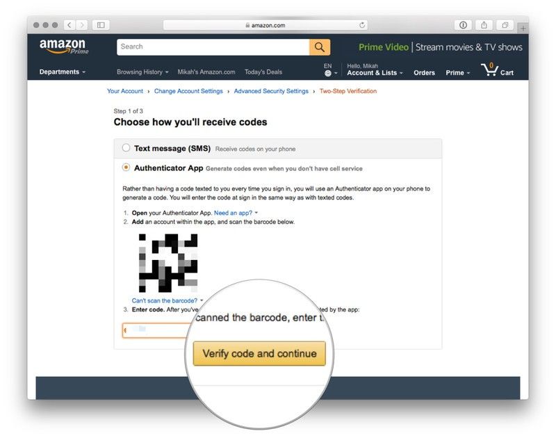 Следуйте инструкциям по настройке двухфакторной аутентификации для вашей учетной записи Amazon.