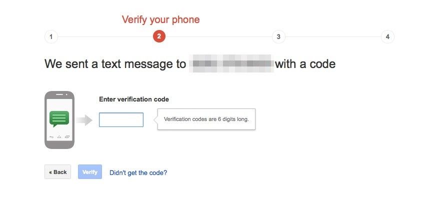 - Подтвердите свой номер телефона, введя шестизначный код, отправленный вам Google.