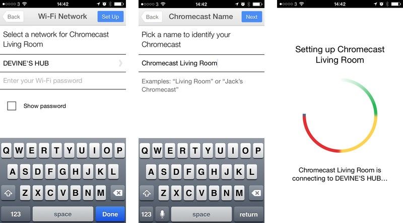 Как только приложение обнаружит Chromecast, вы будете направлены к подключению к домашней сети Wi-Fi, чтобы ввести свои учетные данные и назвать этот конкретный Chromecast. Дайте ему узнаваемое имя, особенно если у вас в доме будет больше одного человека, так как это единственный способ определить, что вы отправляете. После этого все готово, и все остальное позаботится об установке.
