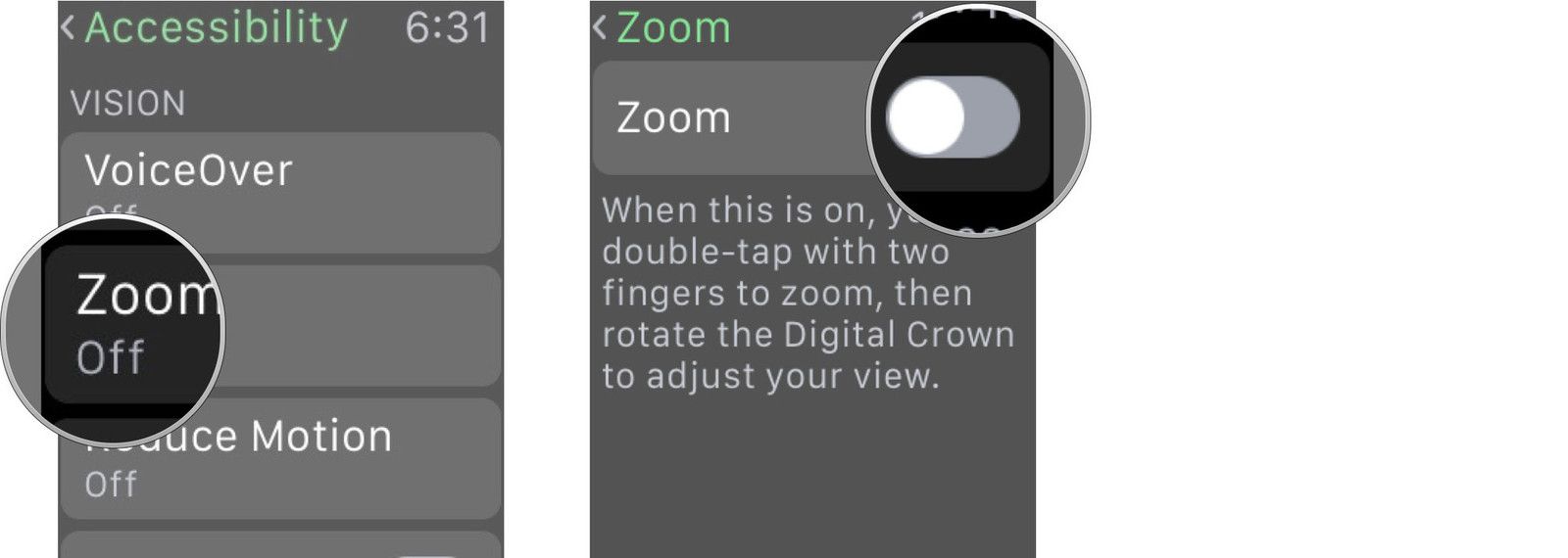 Чтобы лучше помогать тем, кому нужна лучшая визуальная доступность, Zoom позволяет вам устанавливать уровень увеличения по умолчанию для Apple Watch, но также регулировать его динамически. Для людей с нарушениями зрения или частичной слепотой это может сделать то, что в остальном мало, трудно увидеть элементы экрана больше и легче видеть.