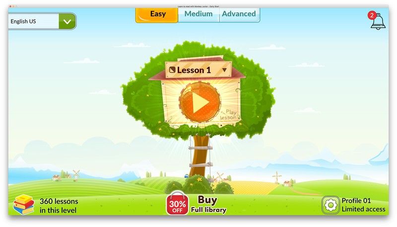 Есть игры для чтения, вопросы о понимании, уроки словарного запаса, и вы можете даже проверить уровень чтения, чтобы убедиться, что уроки не слишком сложны, или что вы не бросаете их софтболы.