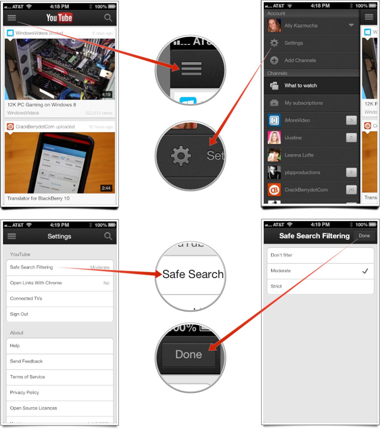 - Здесь вы можете переключаться между строгой, умеренной и без фильтрации. Сделайте свой выбор, нажав на него, а затем нажмите Готово Кнопка в правом верхнем углу.