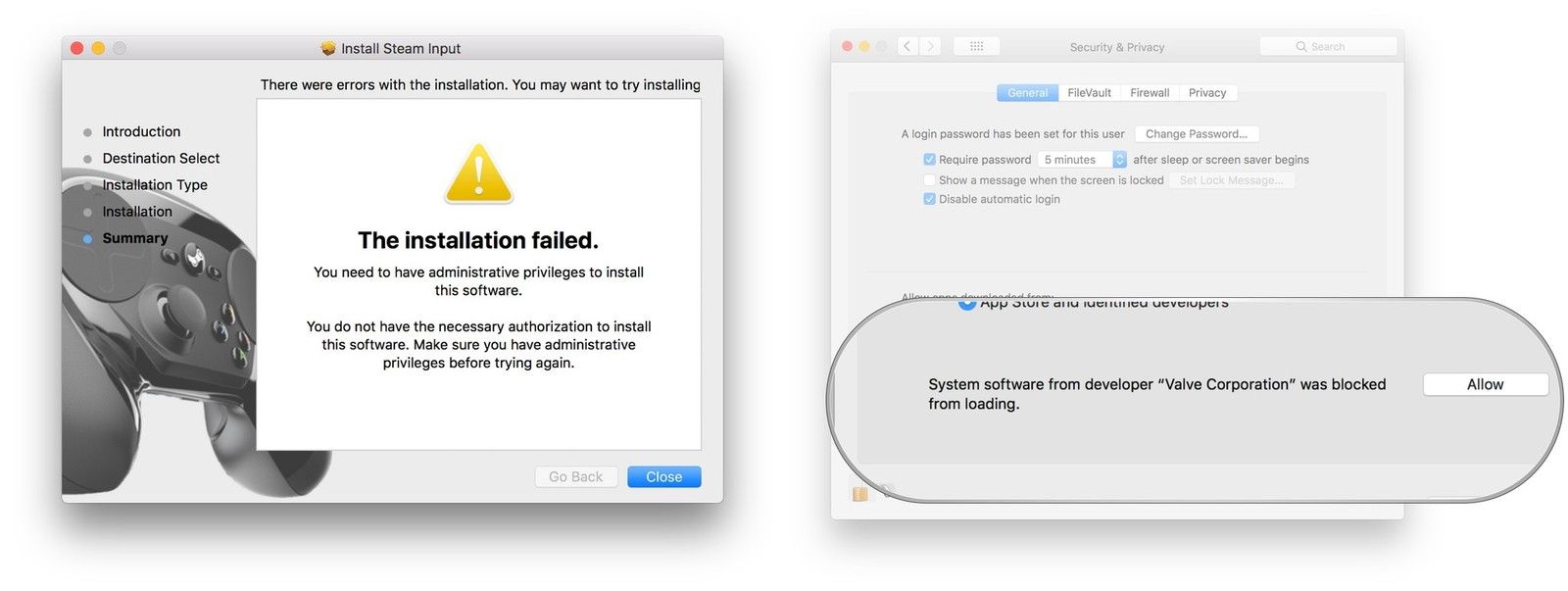 - Внизу вы увидите Системное программное обеспечение от разработчика «Valve Corporation» заблокировано от загрузки. Нажмите ** Разрешить.