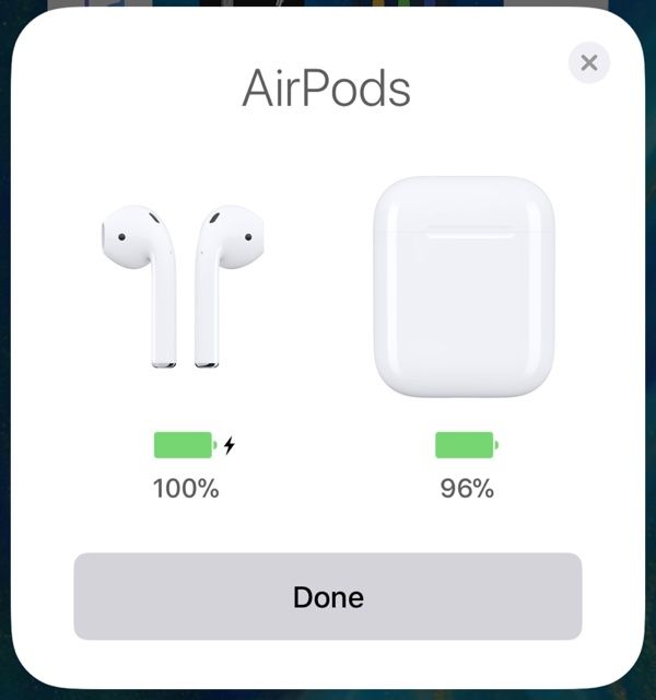 - Когда соединение будет установлено, во всплывающем окне будет отображаться срок службы батареи как для «AirPods», так и для корпуса.