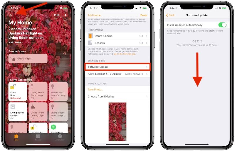 Поиск обновлений «HomePod» и проверка установленной версии программного обеспечения просты, но они не совсем интуитивно понятны, поскольку функция обновления несколько скрыта в приложении Home.