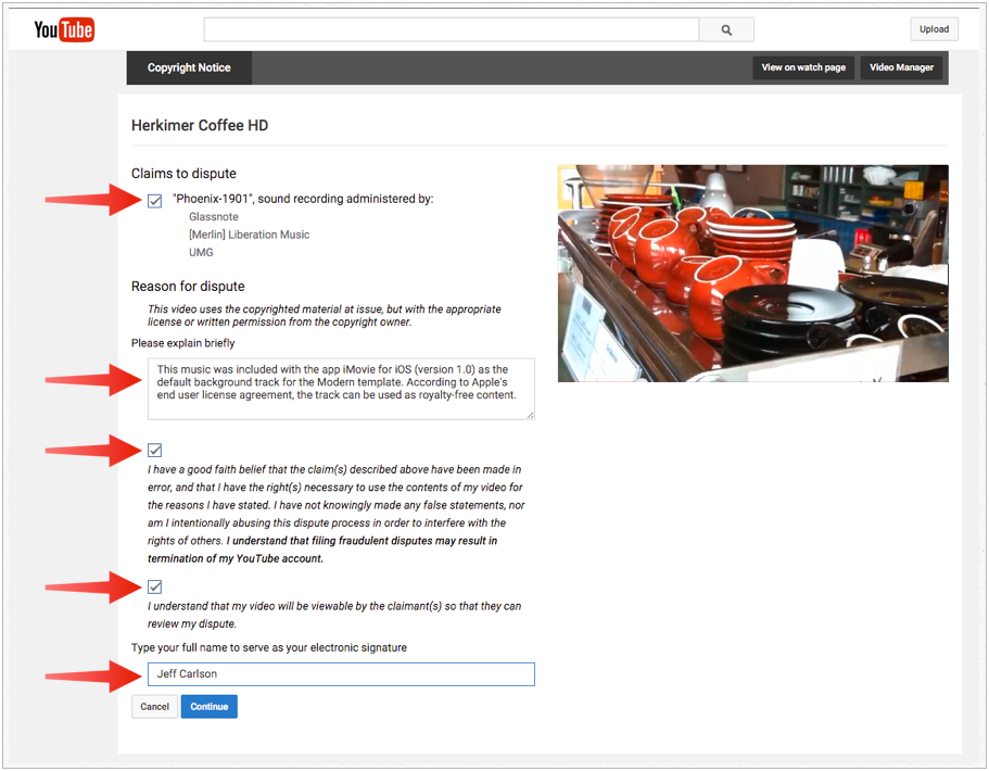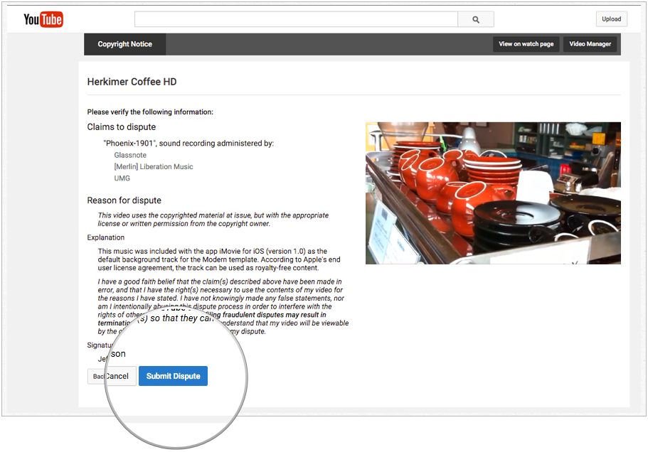 Apple больше не использует «1901» для музыкальной темы, поэтому любые проекты, которые вы создаете сейчас, не столкнутся с этой проблемой. Но если вы столкнулись с такой ситуацией или чем-то похожим, когда вы определенно владеете правами или имеете лицензию на использование оспариваемого материала, вот как ответить.