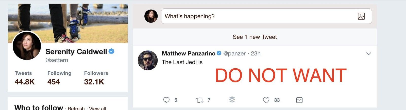 К сожалению, эмбарго на прессу уже нарушено, а это означает, что журналисты, которые посмотрели фильм, и другие лица, возможно, уже говорят о «Последнем джедаях» в Интернете. Ни Рене, ни я не особенно заинтересованы в том, чтобы быть испорченными, но мы также не можем полностью избежать Интернета, учитывая, что это наша работа. Вместо этого мы придумали несколько способов избежать спойлеров и по-прежнему раскручивать наш предстоящий опыт «Звездных войн».
