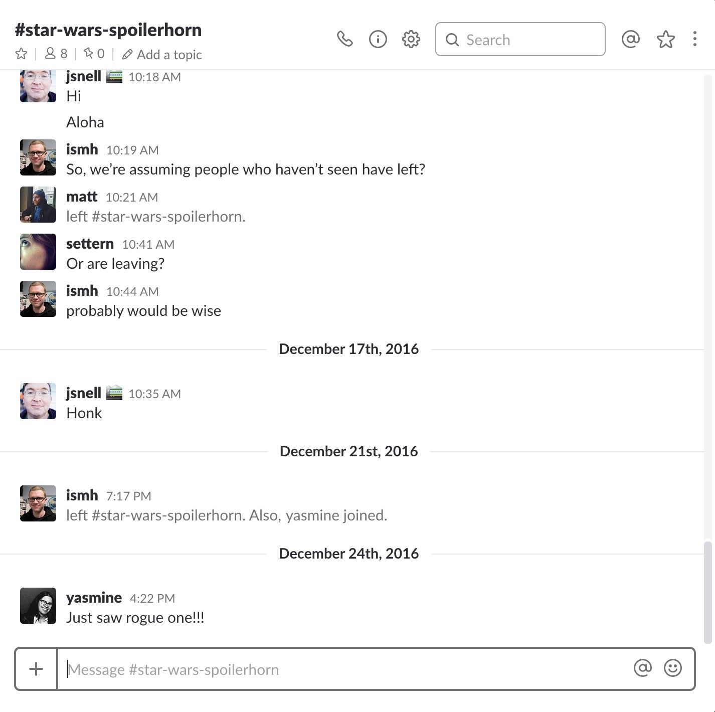 Все еще хотите взаимодействовать с Интернетом, но не хотите, чтобы тролли испортили вам заговор? Подумайте о создании бесплатного канала Slack для друзей, которым вы доверяете, в Интернете, чтобы у вас было безопасное место для общения без случайных спойлеров.