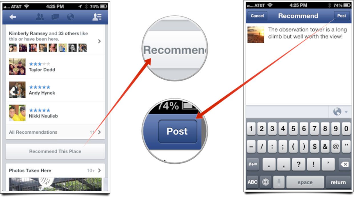 Это все, что нужно сделать. Ваши друзья сразу увидят ваши рекомендации, когда посетят страницу этого места. Если ваши настройки конфиденциальности разрешены, публика также увидит рейтинги и отзывы о компаниях и достопримечательностях.