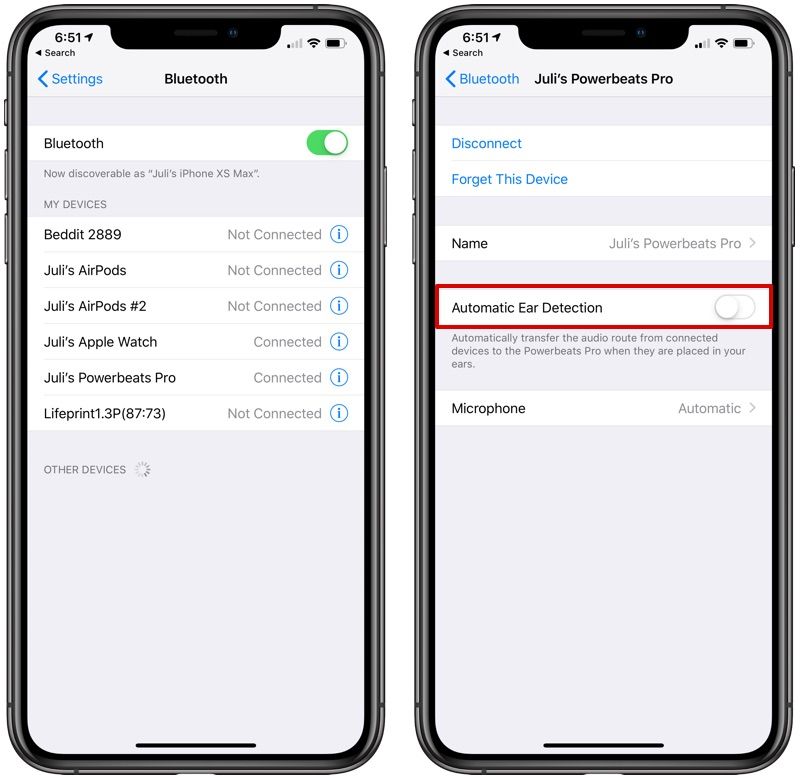 Эта функция включена по умолчанию, но при желании вы можете отключить ее вручную после подключения «Powerbeats Pro» к iPhone или iPad.