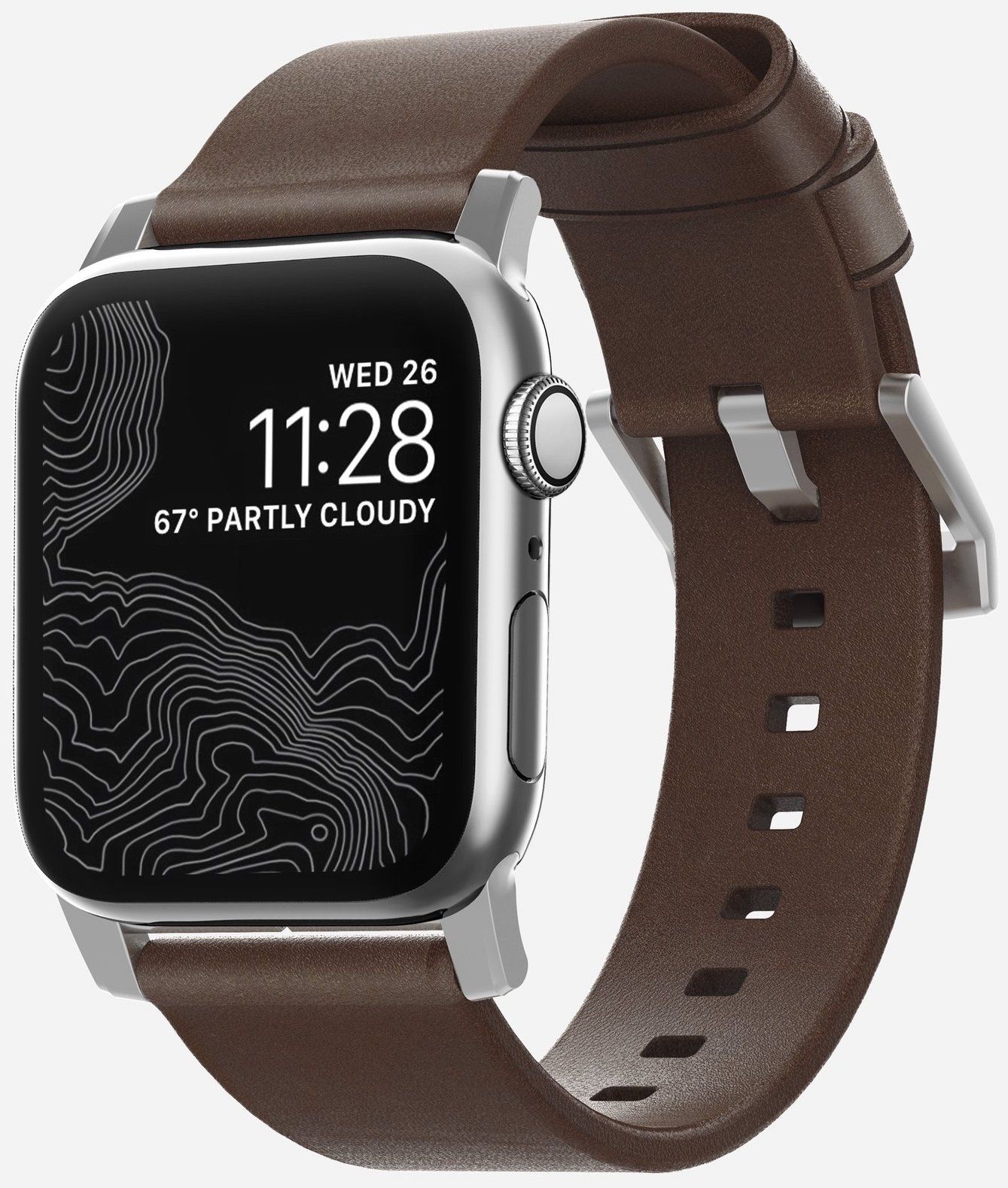 Простой кожаный ремешок от Nomad Modern Leather похож на классический Apple Buckle. Он имеет чистый, без шва дизайн, который выглядит стройным и красивым. Кожа Horween приобретает приятный налет после примерно трех месяцев использования. Это также входит в Естественный коричневый цвет.