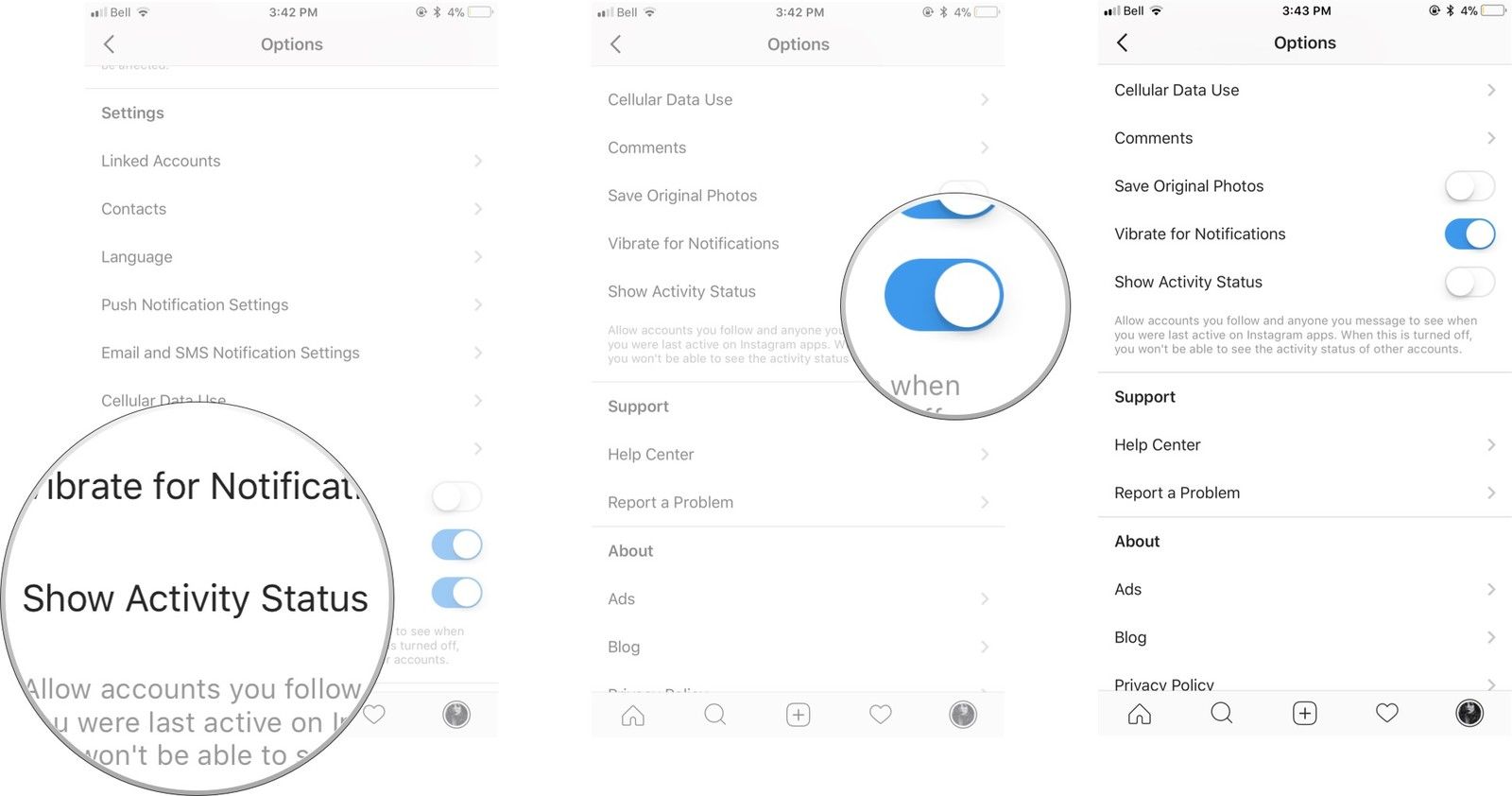 Как отключить Показать статус активности