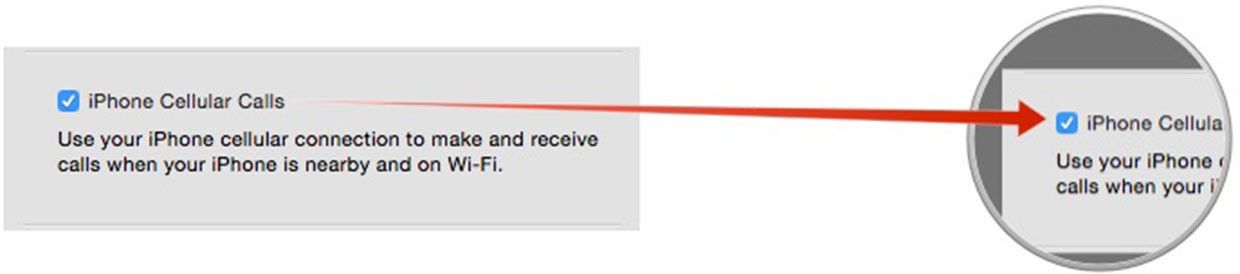 - Uncheck коробка с надписью iPhone Сотовые звонки.