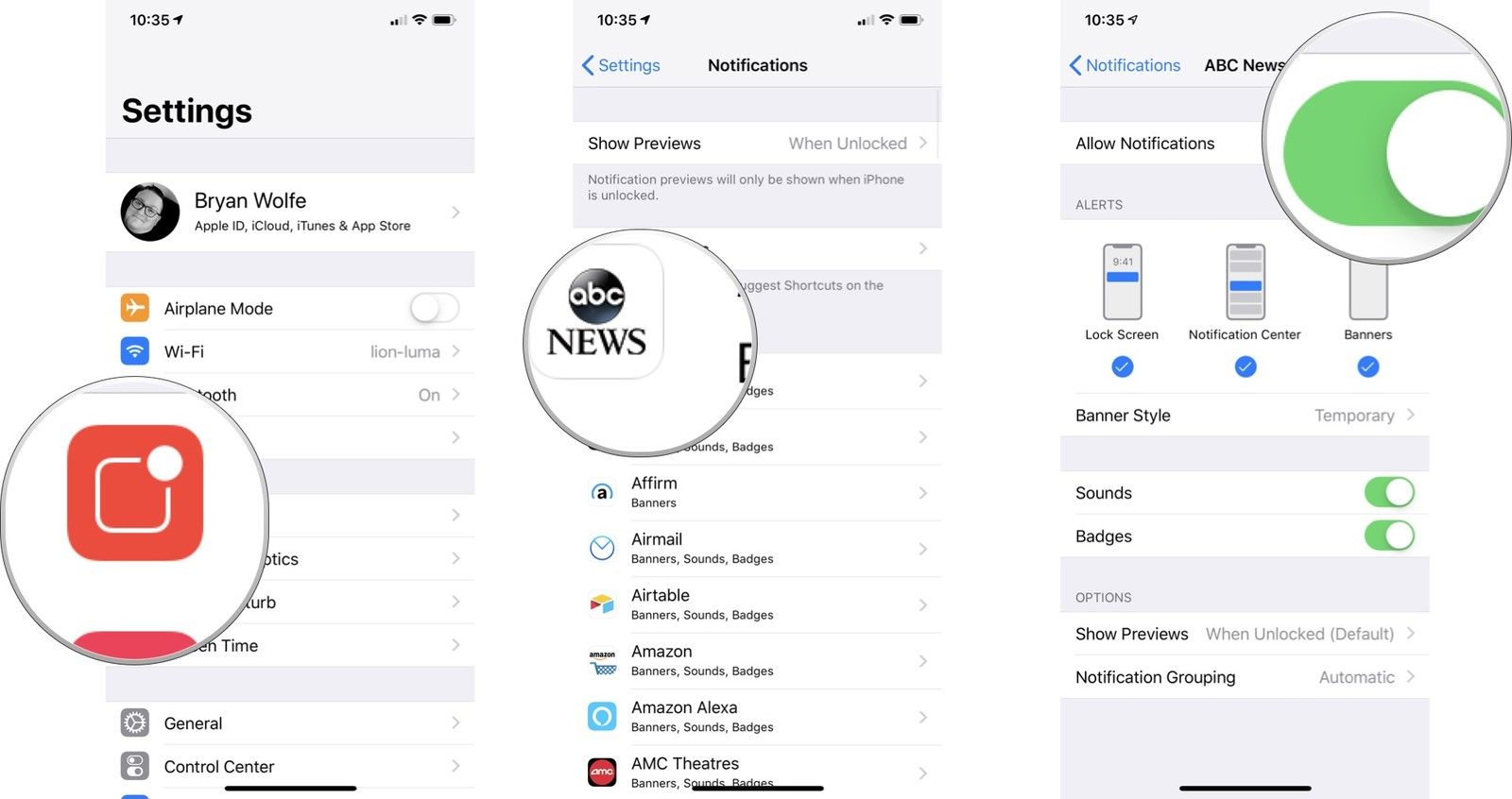 Нажмите тумблер отключить Разрешить уведомления в верхней части экрана.