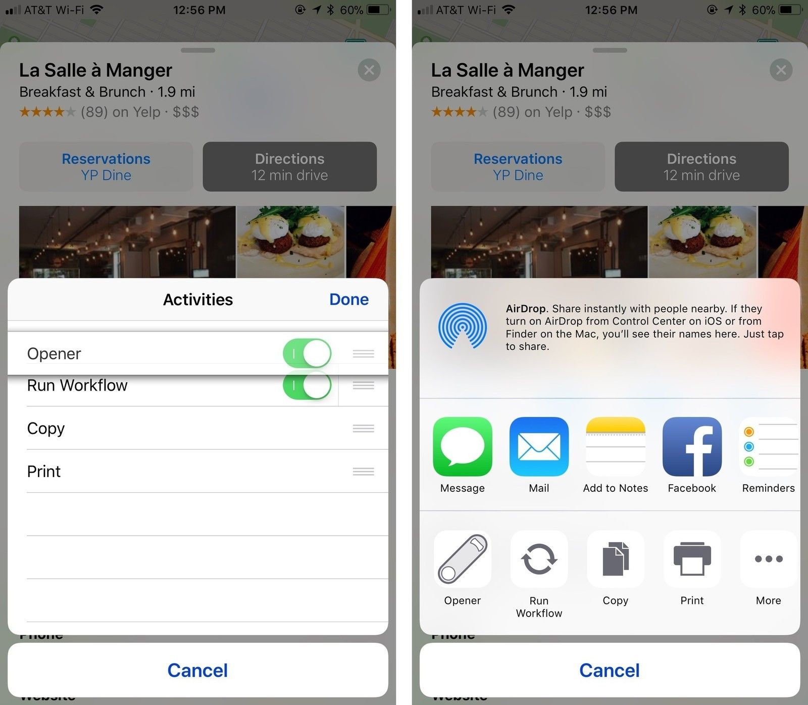 После настройки Opener вы сможете видеть его всякий раз, когда нажимаете кнопку «Поделиться».
