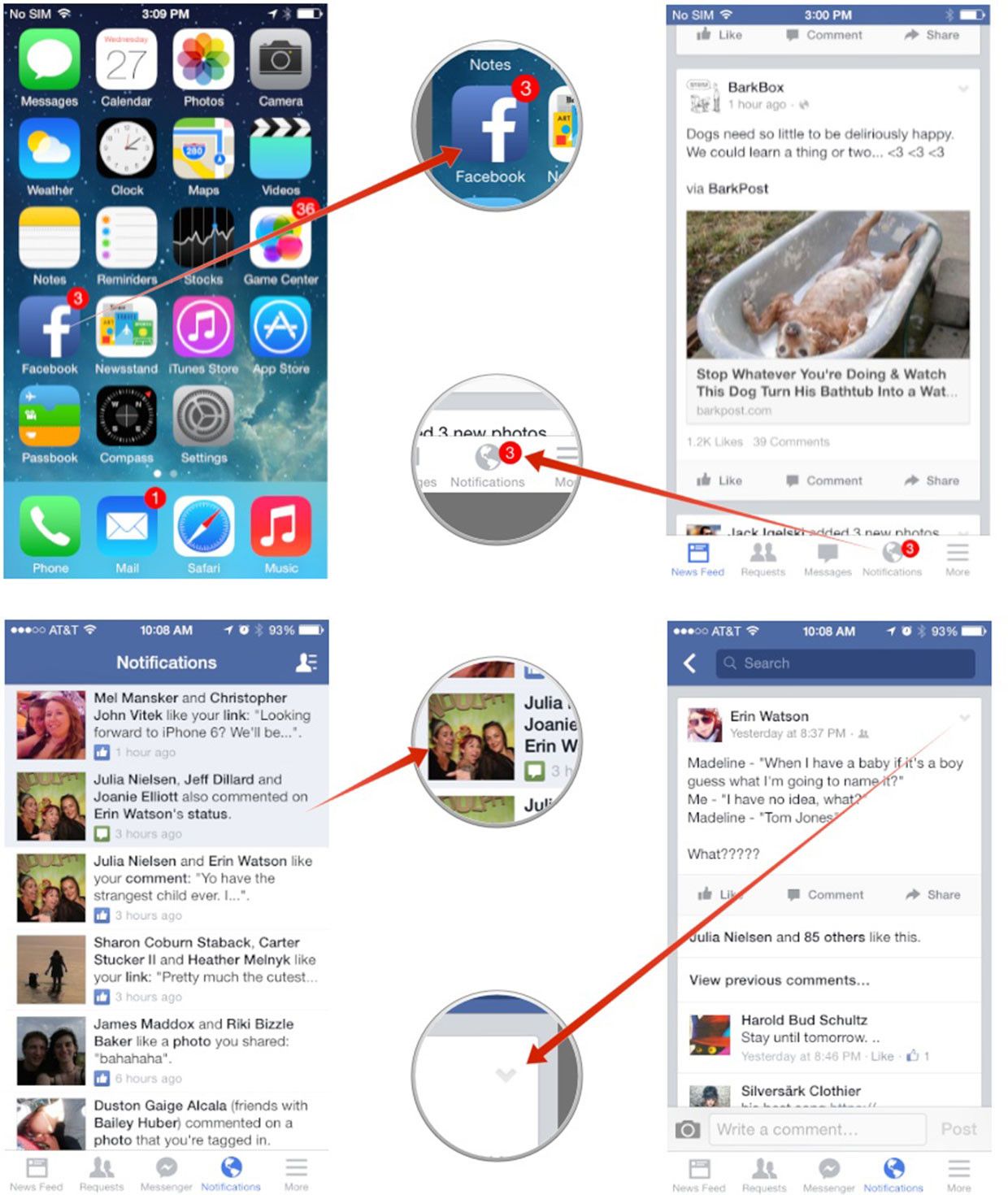 - Найдите статус или фотографию, на которую вы продолжаете получать уведомления, и нажмите на нее — самый простой способ — через Вкладка «Уведомления».