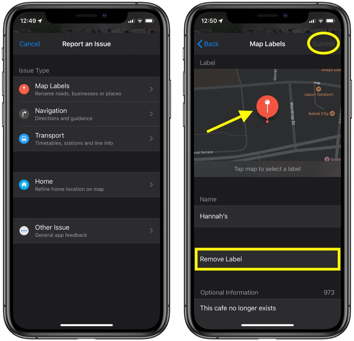 В iOS 13 Apple представила переработанный процесс обратной связи с клиентами для своего приложения Apple Maps, которое разработано, чтобы упростить пользователям отправку исправлений для таких вещей, как неправильные адреса, места работы или часы работы.