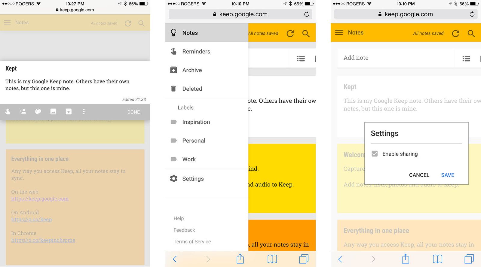 Поскольку iPhone пользуется лучшей в отрасли поддержкой веб-приложений, вы также можете просто зайти в онлайн-магазин Google Keep и использовать сервис прямо из веб-браузера Safari. Вы можете добавить его в закладки, чтобы сохранить его под рукой, и если вы хотите, чтобы значок запускался прямо с вашего Начального экрана, вы можете легко добавить это тоже, просто нажав кнопку «Поделиться».
