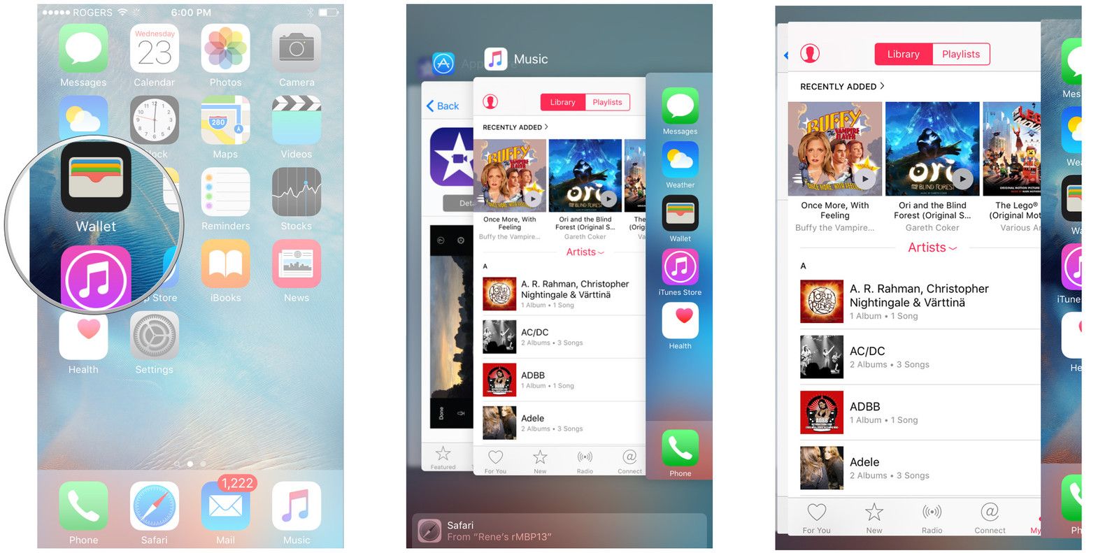 Быстрый переключатель приложений iOS 9 был переработан таким образом, чтобы вы могли быстро перетаскивать свой стек последних приложений. Это действительно имеет смысл на iPhone 6s и iPhone 6s Plus. С 3D Touch, новой чувствительной к давлению технологией Apple, вам больше не нужно дважды нажимать кнопку «Домой», чтобы вызвать ее: вы просто нажимаете и проводите назад. Это приложение переключается так, как должно было быть сделано.