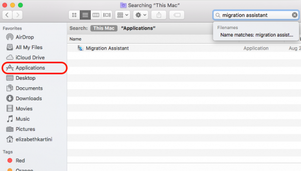 - Запустите Migration Assistant, открыв панель Finder, нажмите «Приложения». Здесь вы можете ввести «Помощник по миграции» в поле поиска, тогда приложение появится в кратчайшие сроки.