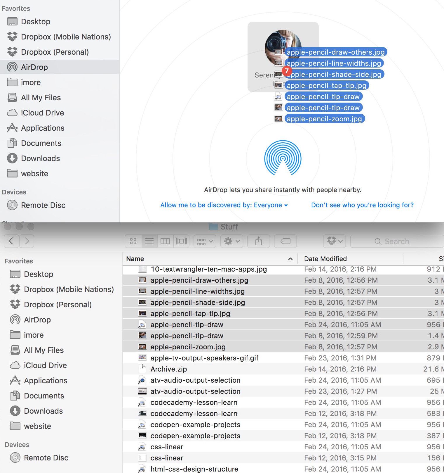 - Перетащите выбранные файлы к iPhone или же IPad вариант в AirDrop на вашем Mac.
