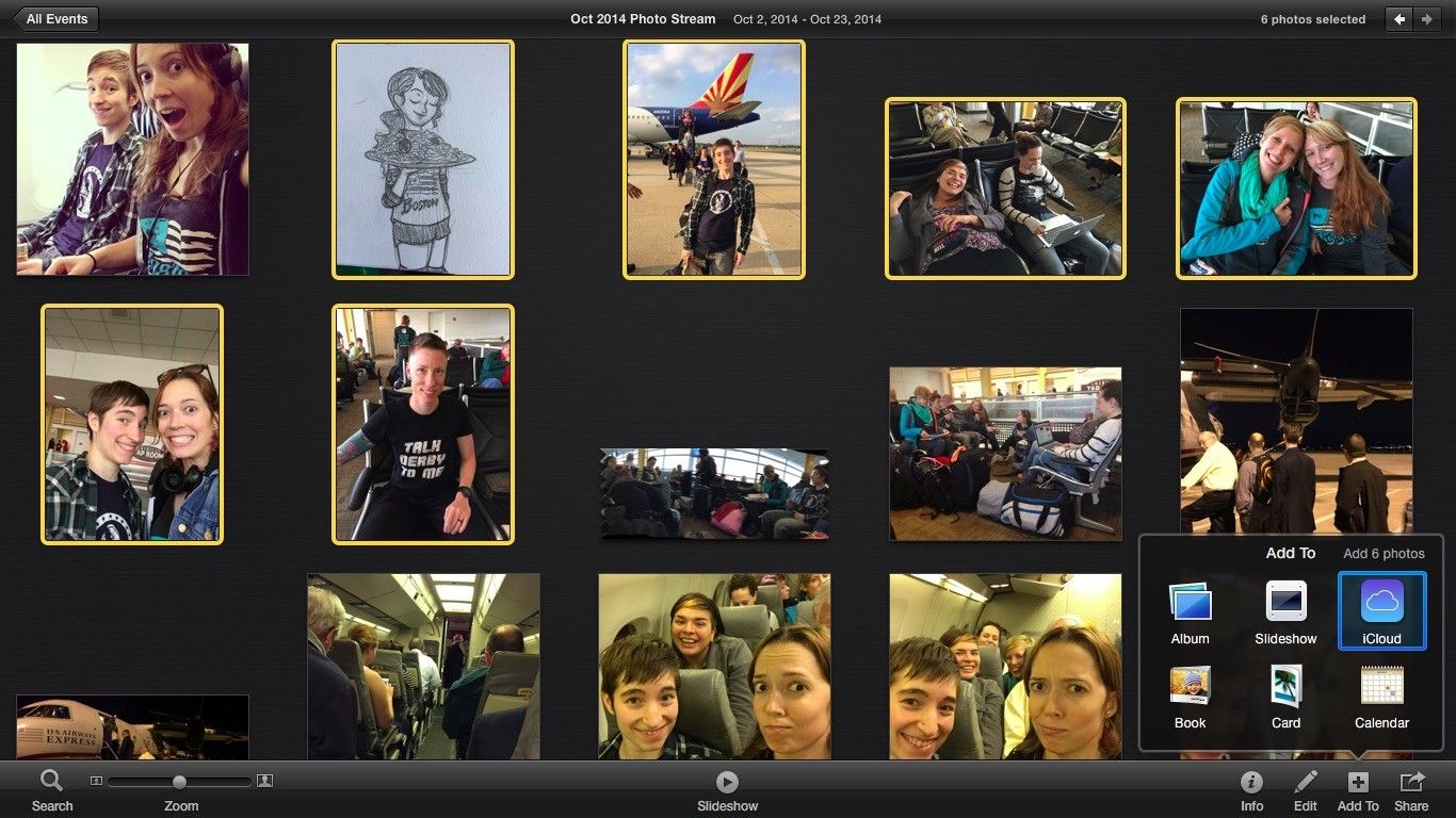 - Нажмите Добавить в> iCloud или же Поделиться> iCloud с вашей картинкой, выбранной для создания нового общего потока фотографий.