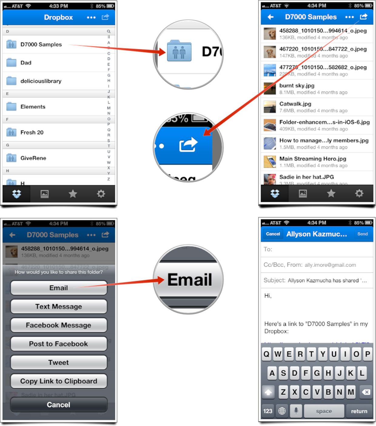 - Теперь выберите способ поделиться этой папкой. Для этого примера мы отправим ссылку по электронной почте.