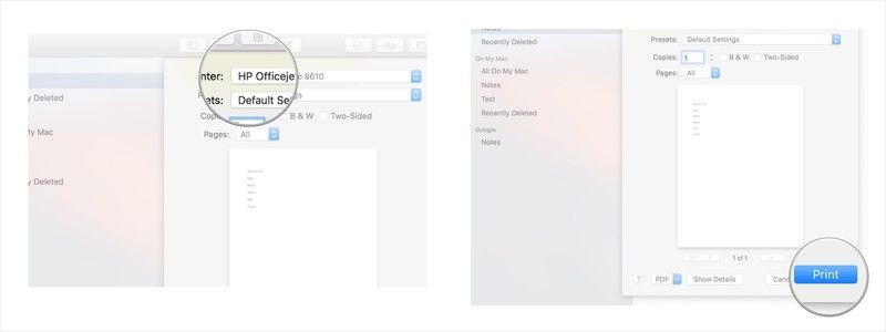 Более быстрый способ запустить меню печати из Notes на Mac — нажать Клавиши управления (⌘) и «P» одновременно. Это приведет вас прямо к экрану печати.