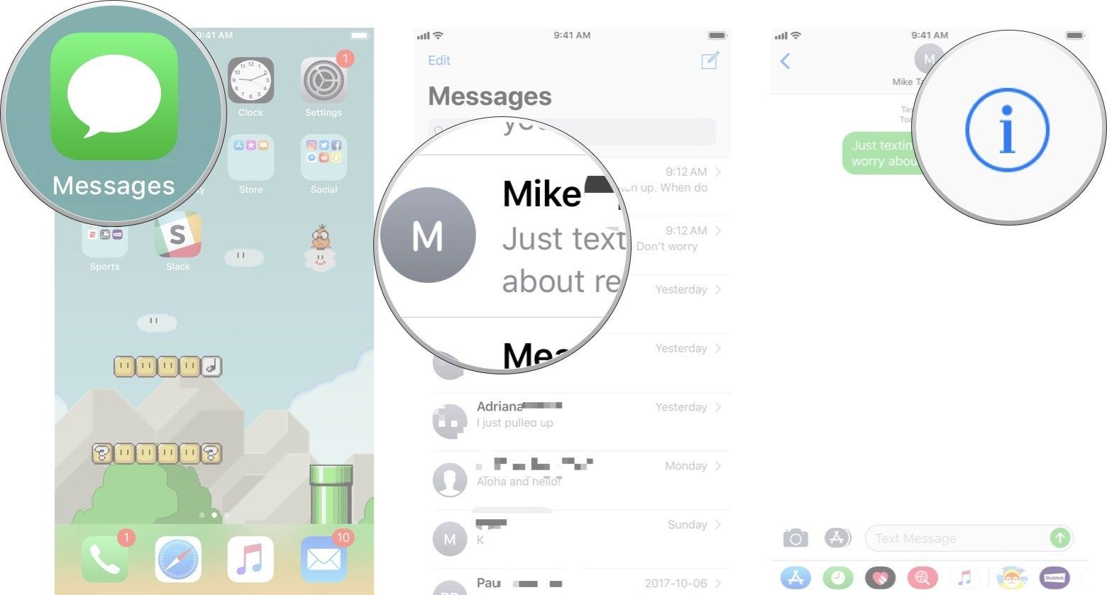 - Нажмите на разговор в котором вы хотели бы поделиться своим местоположением. Это может быть как с отдельным человеком, так и с группой, если все в нем используют iMessage.