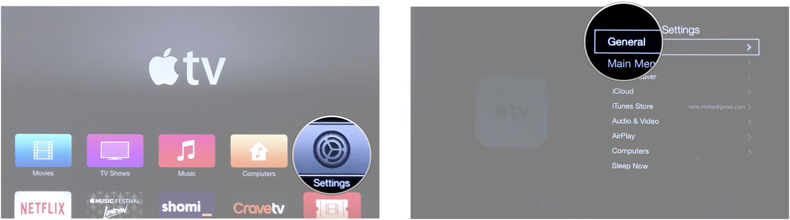 С помощью Siri Remote выберите настройки значок на главном экране Apple TV.
