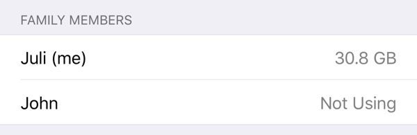Важно отметить, что при использовании одного из новых планов Apple iCloud Storage для семей нет способа распределить объем памяти, который получает каждый человек, так что это не всегда равномерное распределение. Если член семьи занимает слишком много места, эту проблему необходимо решить в автономном режиме. Вы можете увидеть, сколько памяти использует каждый член семьи, перейдя в профиль> Общий доступ к семейству> Хранилище iCloud.