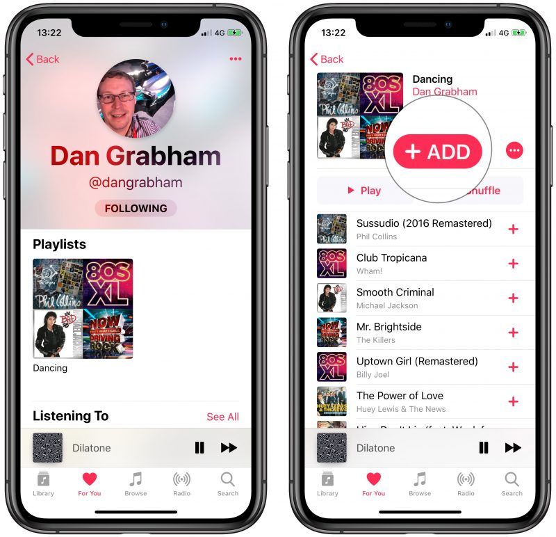 - Нажмите или нажмите +Добавлять кнопка, чтобы добавить плейлист вашего друга в вашу библиотеку.