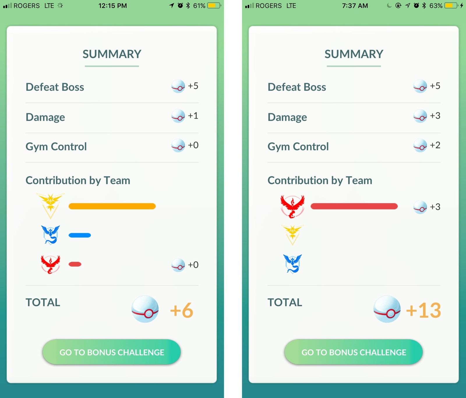 - Контроль над тренажерным залом (до +2): если в момент начала рейда тренажерный зал принадлежит вашей команде, тем больше шариков Premier вы получаете. (Хотя это в настоящее время невероятно затруднительно и часто не соблюдается.)