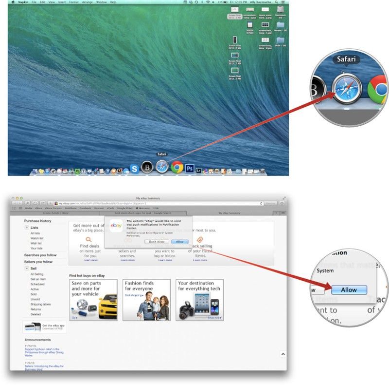 - запуск Сафари с рабочего стола вашего Mac под управлением OS X Mavericks и перейдите на сайт, с которого вы хотите получать уведомления.