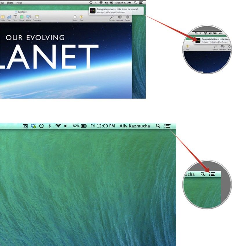 Это все, что нужно сделать. Хотя сейчас это кажется очень ограниченной поддержкой, это одна из моих любимых функций OS X Mavericks, и я очень надеюсь, что другие сервисы скоро начнут ее поддерживать. Я нашел это особенно полезным, если вы продаете много товаров на eBay и хотите следить за сообщениями и другими взаимодействиями без необходимости проверять электронную почту или запускать веб-браузеры.