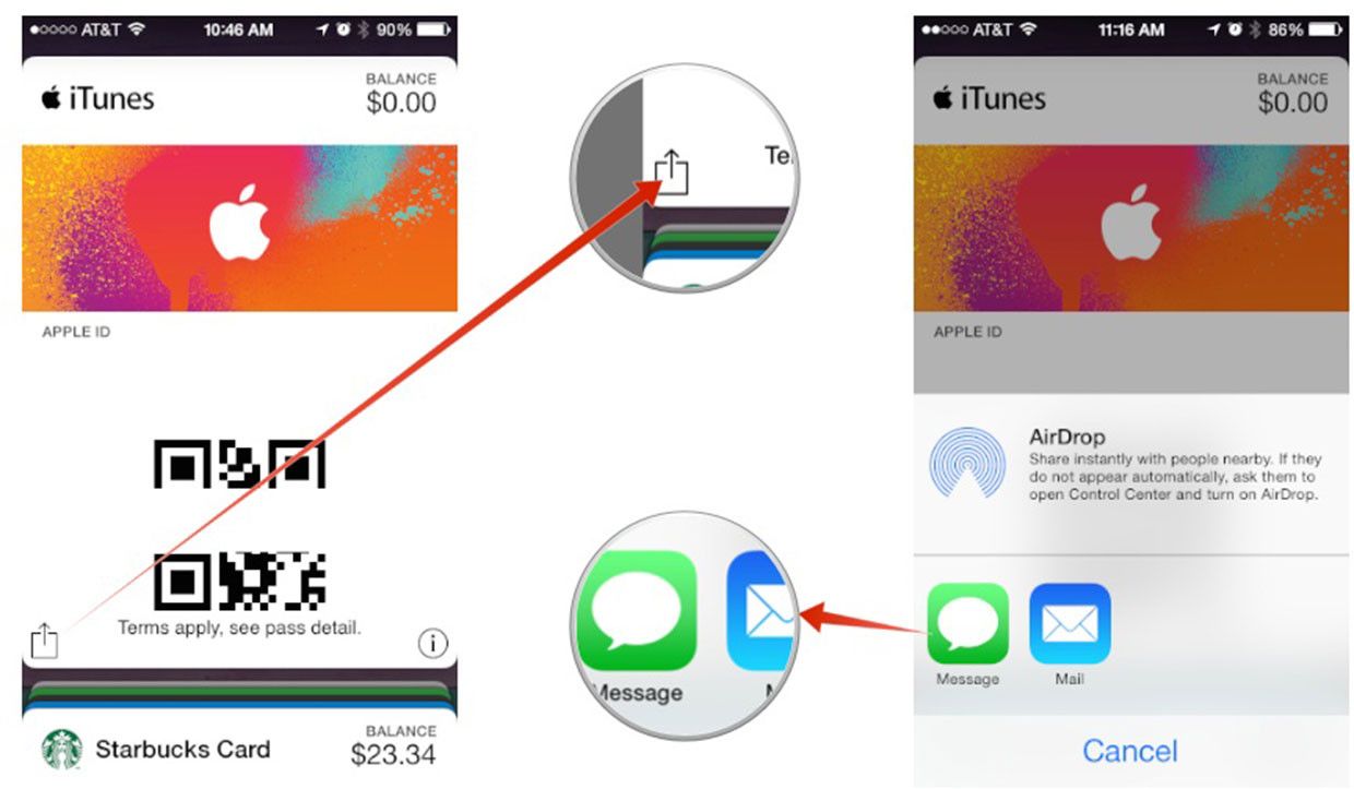 Новая функция Apple Pass от Apple позволяет вам добавить карточку в приложение Passbook, которая содержит информацию об учетной записи iTunes. Затем вы можете поделиться этой картой, чтобы другие могли легко добавить кредит в любом магазине Apple Store без необходимости покупать физическую карту. Самая удобная часть заключается в том, что кредит мгновенно попадает на вашу учетную запись iTunes, поэтому больше не нужно ждать физических карт.