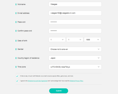 Перейдите на https://accounts.nintendo.com и создайте совершенно новую учетную запись с совершенно отдельным адресом электронной почты от обычной учетной записи. Заполните все запрошенные данные.