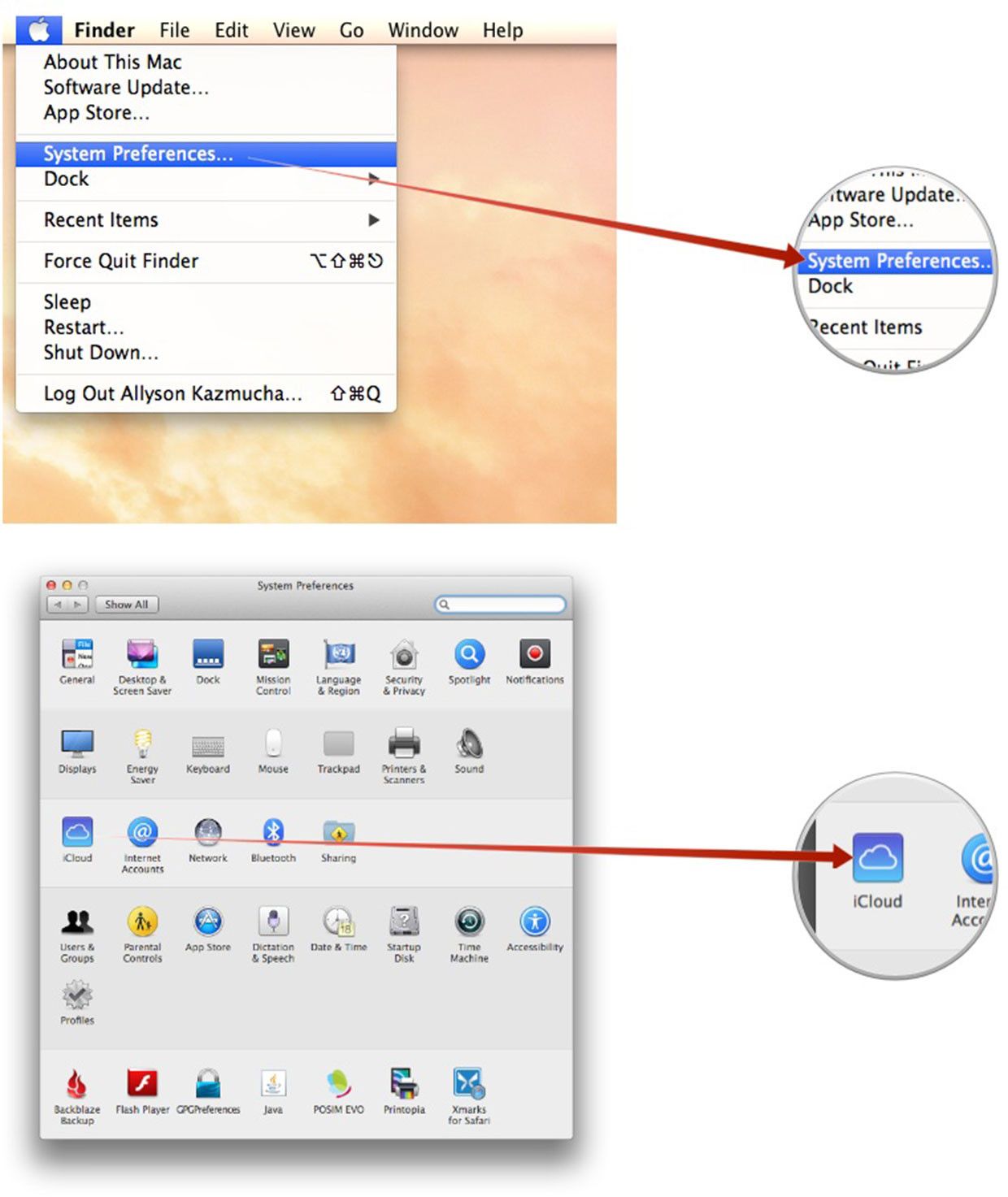 - запуск Системные настройки из Меню Apple на вашем Mac под управлением OS X Lion или новее.
