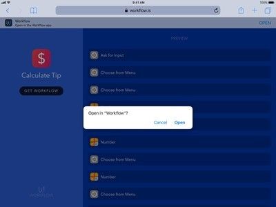 Когда вы находитесь на мобильном телефоне, нажав на ссылку рабочего процесса, вы попадете в приложение Workflow и добавите его в свою коллекцию.