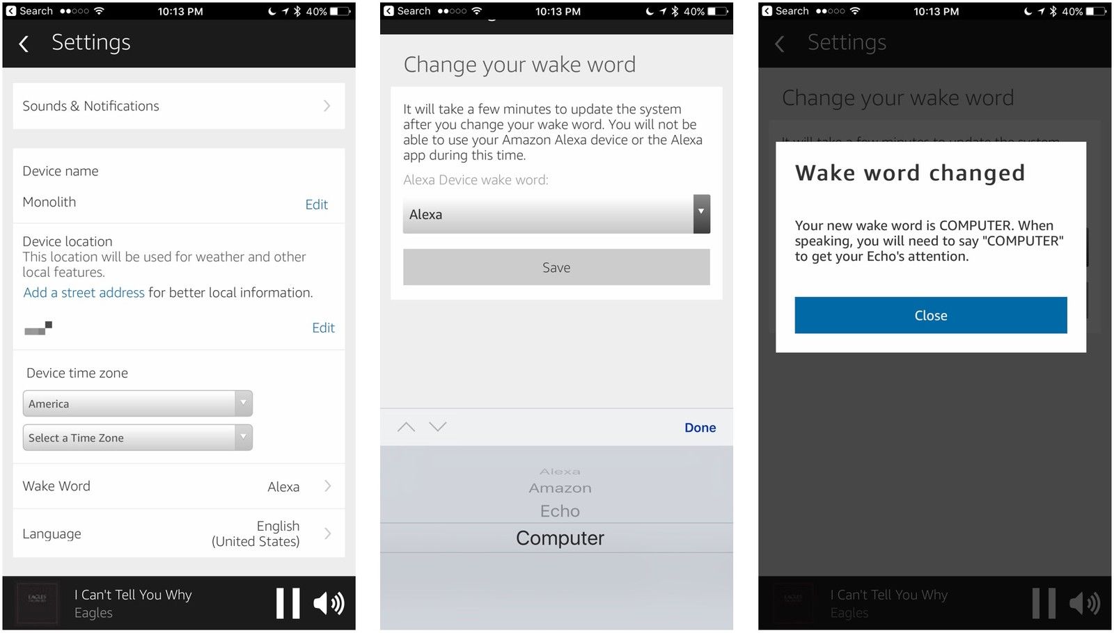 Когда закончите, вы получите Wake слово изменилось подскажите вместе с инструкциями как его использовать. Помните, что вам нужно будет изменить это слово для каждого Echo, Dot или Tap.