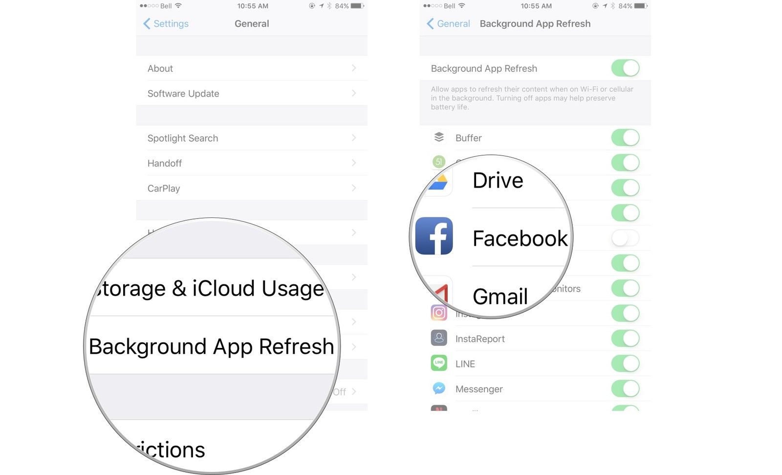 Фоновое обновление приложения и настройки местоположения — огромная проблема с приложением Facebook. Первое, что вы должны сделать, это полностью отключить эти вещи, следуя инструкциям ниже. Вам также следует регулярно проверять две области, упомянутые ниже, чтобы убедиться, что никакие приложения, которые не должны иметь постоянного доступа к ресурсам, отключены.