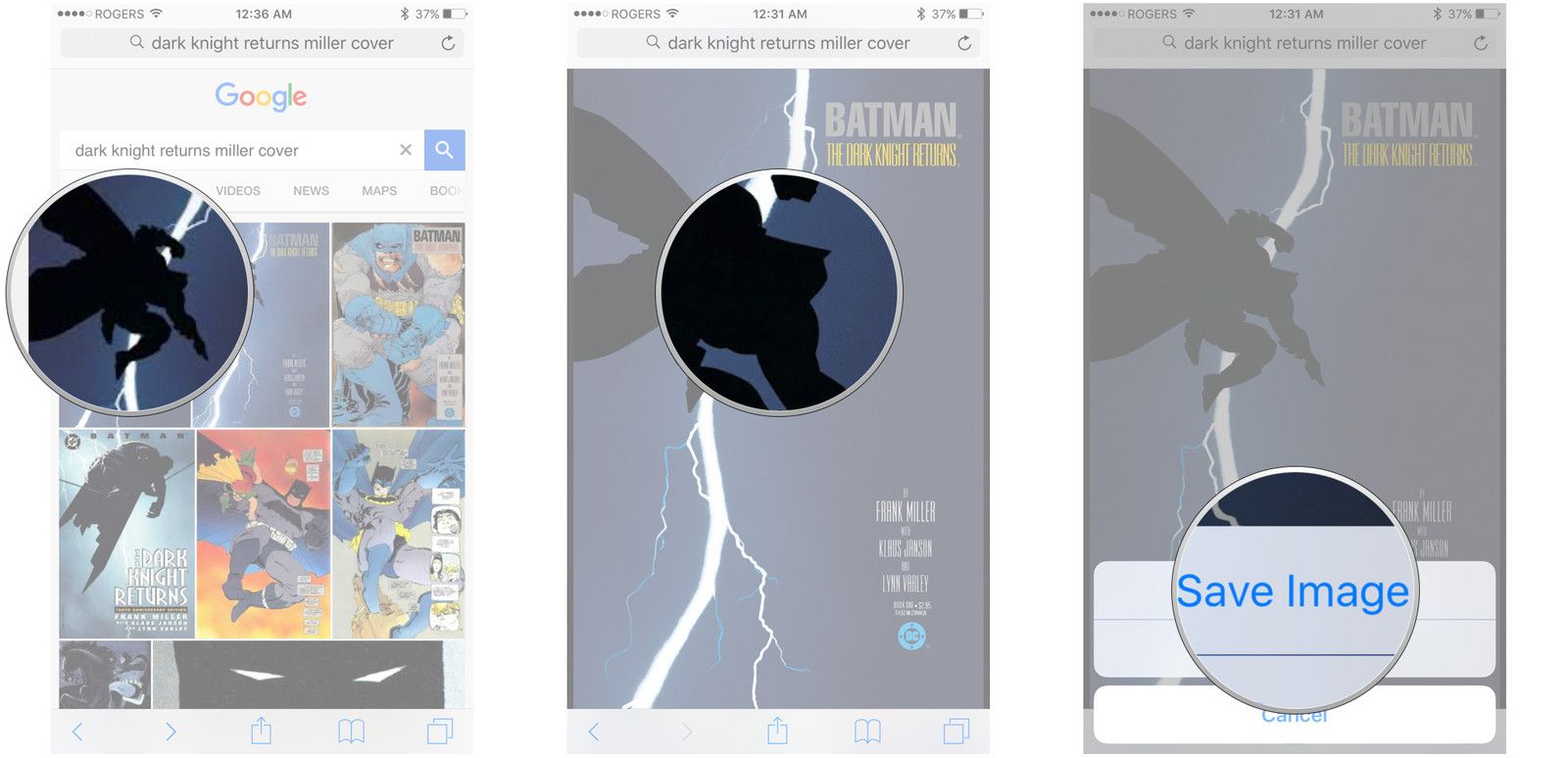 - Нажмите и удерживайте изображение, чтобы открыть опцию сохранения.
