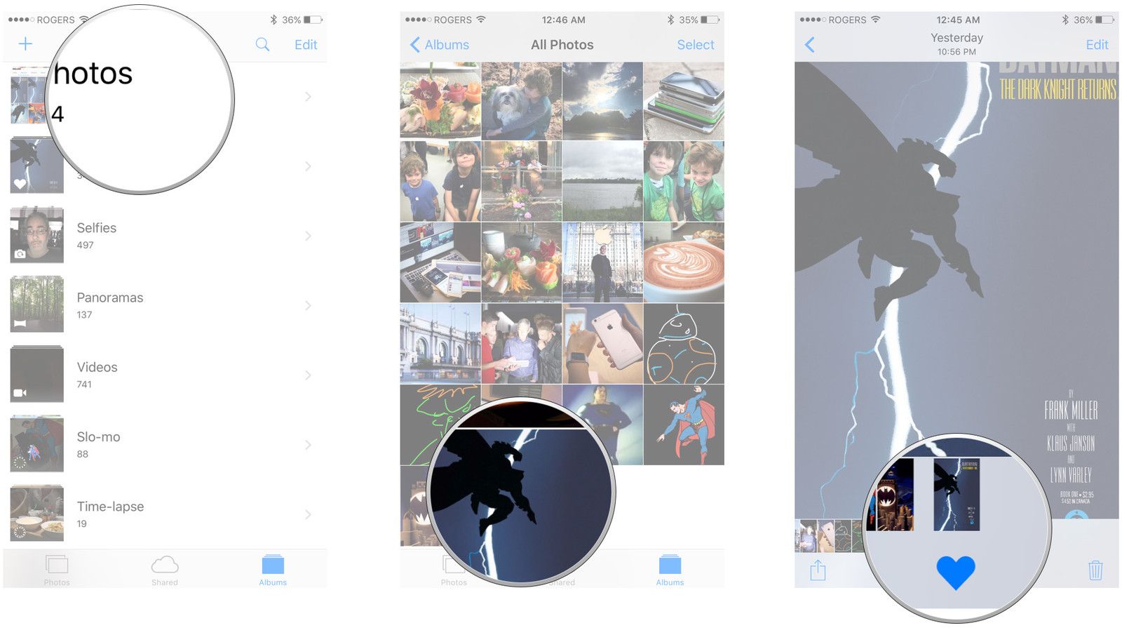 - Нажмите Сердце кнопка, чтобы добавить изображение в избранное, если Избранные это фотоальбом, который вы синхронизируете со своими Apple Watch.
