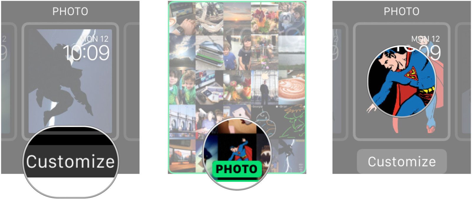 Если вам что-то не нравится в изображении, вы можете отредактировать его в приложении «Фотографии» или отредактировать в своем любимом приложении для обработки изображений на iOS, OS X или Windows. Для изображения Superman выше я сделал черный фон в Photoshop, чтобы он лучше соответствовал эстетике Apple Watch.