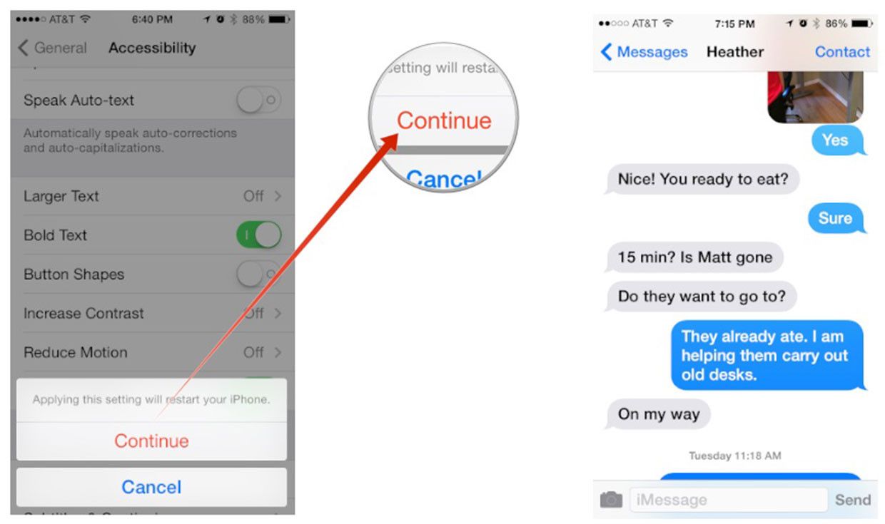 Как только вы перезагрузите iPhone или iPad, вы должны заметить, что текст более жирный, чем был раньше, и не такой тонкий. Для людей с нарушениями зрения это должно значительно облегчить чтение текста. Помните, что не все сторонние приложения будут поддерживать жирный текст. Тем не менее, все встроенные приложения и многие приложения App Store делают.